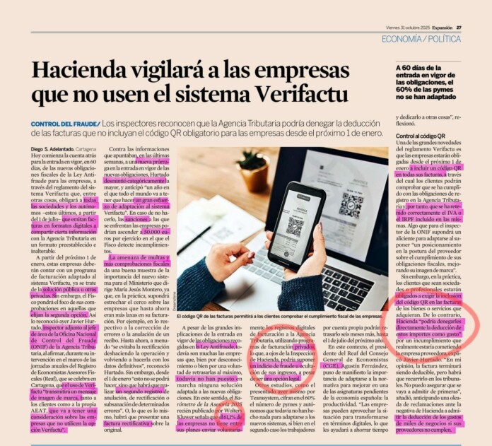 VERIFACTU, PRESIÓN FISCAL EN FACTURA